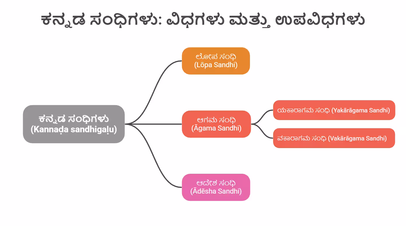 Now that we know the basic terms, let us explore the sandhis that happen when pure Kannada words join together. There are three main types of Kannada sandhis. Two of them deal with vowels meeting vowels, and one deals with consonants.